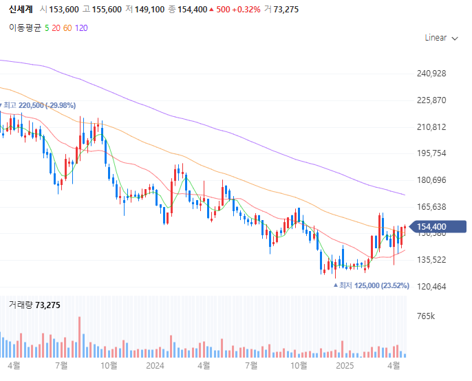 📈 2. 최근 신세계 주가 흐름 요약